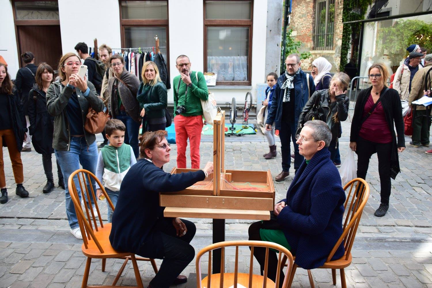 proposée pour la première fois à la Brocante Performative de la rue de Flandre, sur l’invitation de Barumbara en 2017.