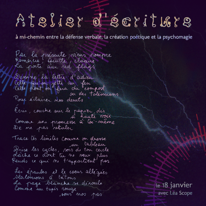 Atelier animé par Léa Scope, artiste polymorphe et formatrice en autodéfense